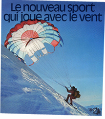 In the early Seventies Dieter Strasilla and Andrea Kuhn experimented with round and rectangular sails. However, for a long time they were not available commercially. "Even in the year 1985", according to parapente-pioneer Dieter Strasilla, "predictions for this sport by experts were rather pessimistic". In comparison to the hang-glider the price versus performance ratio was discouraging. Only one year later the boom began. Foremost in France the simplicity of the system found acceptance with great enthusiasm. The first parapente school in Mieussy was very popular. Then the boom reached Switzerland. | |||||||||
