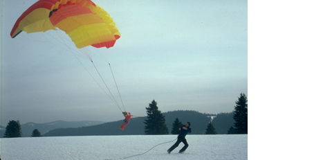 Bernhard being towed by the skisail in Sils Maria | ||||||