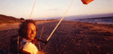 | Dasselbe Uebungsgebiet (Pacifik Kueste, Kalifornien) aber eine Generation spaeter - links: Udo Strasilla mit Rundschirm in den 70ern - rechts: Sohn Eric Strasilla mit modernen Parapente in 2010 | Same training ground (Pacific Coast, California) but a generation apart - left: Udo Strasilla with round canopy in early 70's - right: son Eric Strasilla with modern parapente in 2010 | |||