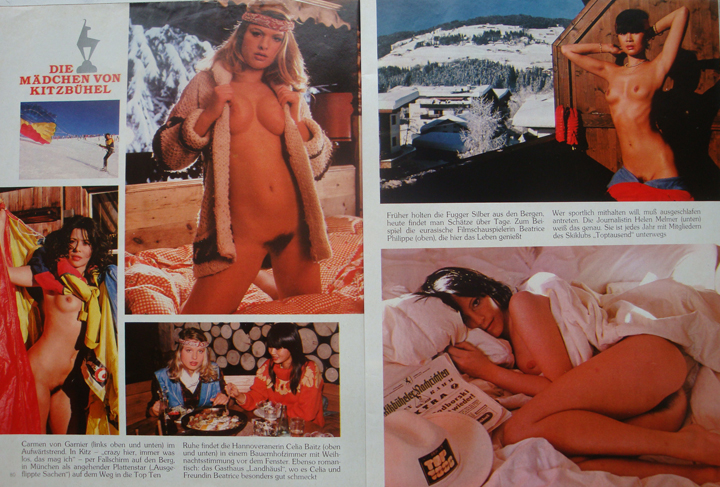 Skywing and the Girls from Kitzbuehel Carmen from Garnier (upper left and below) in the Upward Trend. In Kitzbuehel - "crazy here, always with activities, I love that" - going uphill with the Uphill Racer. In Munich as rising musical star ("Flipped Items" moving toward the Top Ten. Playboy, December 1982 |